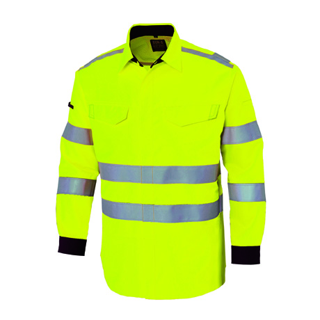 反射テープで高視認性を実現。収納性や快適性も追求した安全服シャツです。